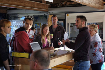 The general briefing by the organiser welcoming everyone to this Championships and thanking all for coming, it is an excellent turnout and exceeds the number of teams that entered in 2011 (the last time this organiser held a European Championships and World Cup). He was followed by Dr. Rainer 'Exi" Hoenle, IPC President and also Meet Director for this competition. He explained the plan for the start of the competiton at 9.00 am tomorrow, starting with 4-Way Open, 4-Way Female and VFS - followed by a second round of each. This should take us through to about mid-day when we would switch to CF 2-Way, AE and Speed skydiving with the aim to complete two rounds of all events before stopping at 16.30 in order to change and get to the Opening Ceremony to be held in the Centre of Saarlouis starting at 18.00.